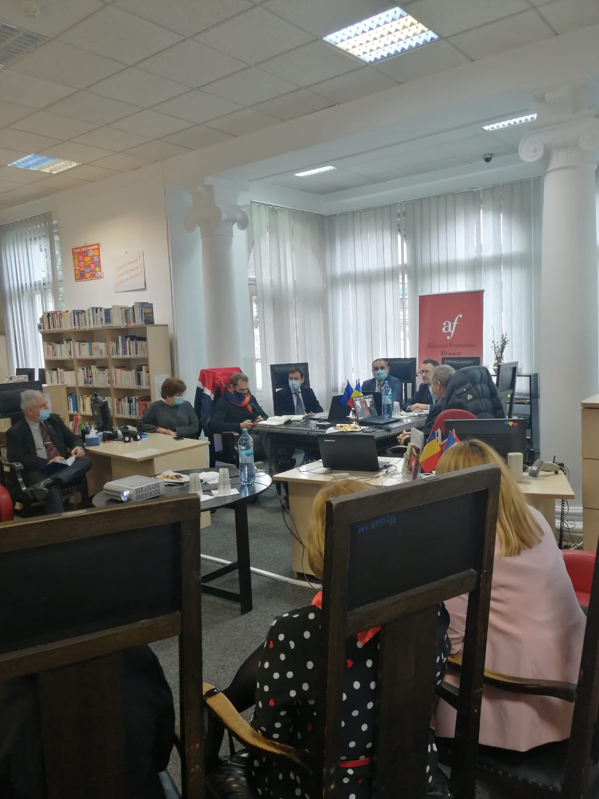 A la réunion ont participé également : le Directeur adjoint de l’IF de Roumanie, le Consul honoraire de France à Brașov et le lecteur français de l’Université Transilvania de Brașov.