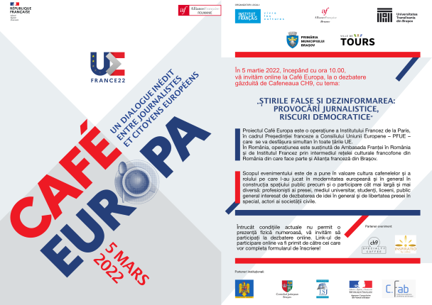 Proiectul Café Europa, o operațiune a Institutului Francez de la Paris, în cadrul Președinției franceze a Consiliului Uniunii Europene – PFUE, s-a desfășurat la Brașov simultan cu toate celelalte dezbateri organizate în diverse țări UE.